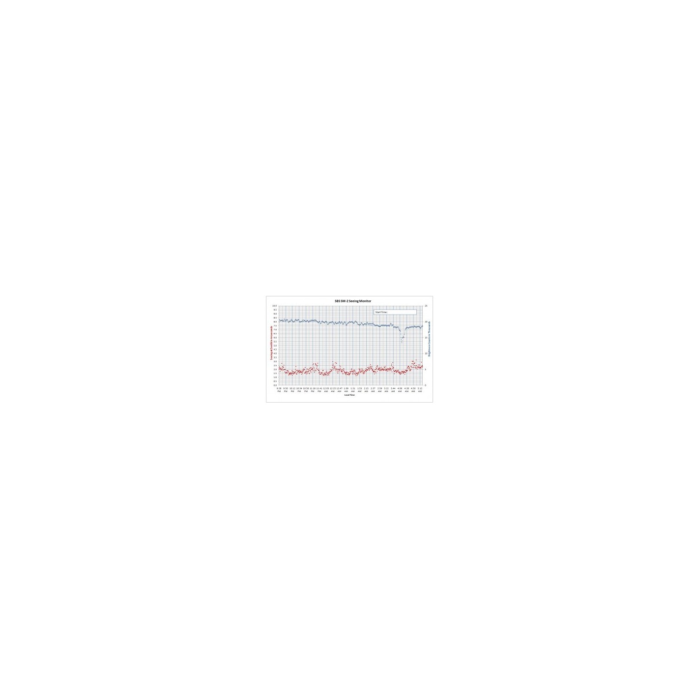 Le moniteur de vision SM-3 est particulièrement utile pour ceux qui disposent d'une installation permanente, mais aussi pour ceux qui doivent s'installer tous les soirs pour prendre des images astro. En rapportant et en traçant la vision d'une nuit à l'autre et d'une heure à l'autre, l'utilisateur peut déterminer le moment optimal pour tenter de prendre des images à haute résolution et les moments où un équipement plus approprié pour des images à grand champ et à plus faible résolution pourrait être conseillé. Le Seeing Monitor intègre le matériel nécessaire dans un boîtier étanche et comprend un logiciel personnalisé. La vision est affichée en unités de la demi-largeur zénithale maximale (FWHM) en secondes d'arc attendue pour une image stellaire à longue exposition.