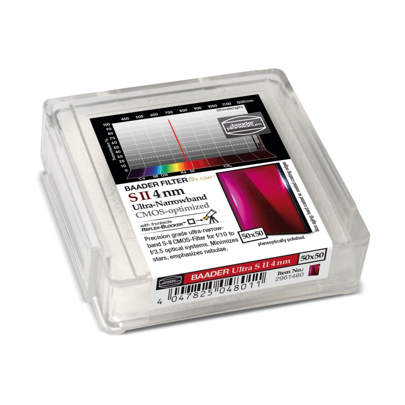 Filtre Baader S-II Ultra-Narrowband 4nm 50x50 mm optimisé pour CMOS