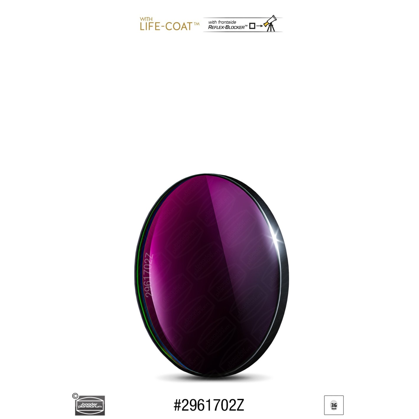 - Filtre passe-bande Baader Sloan-z-s' 36mm x 2mm, adapté de f/15 à f/1.8