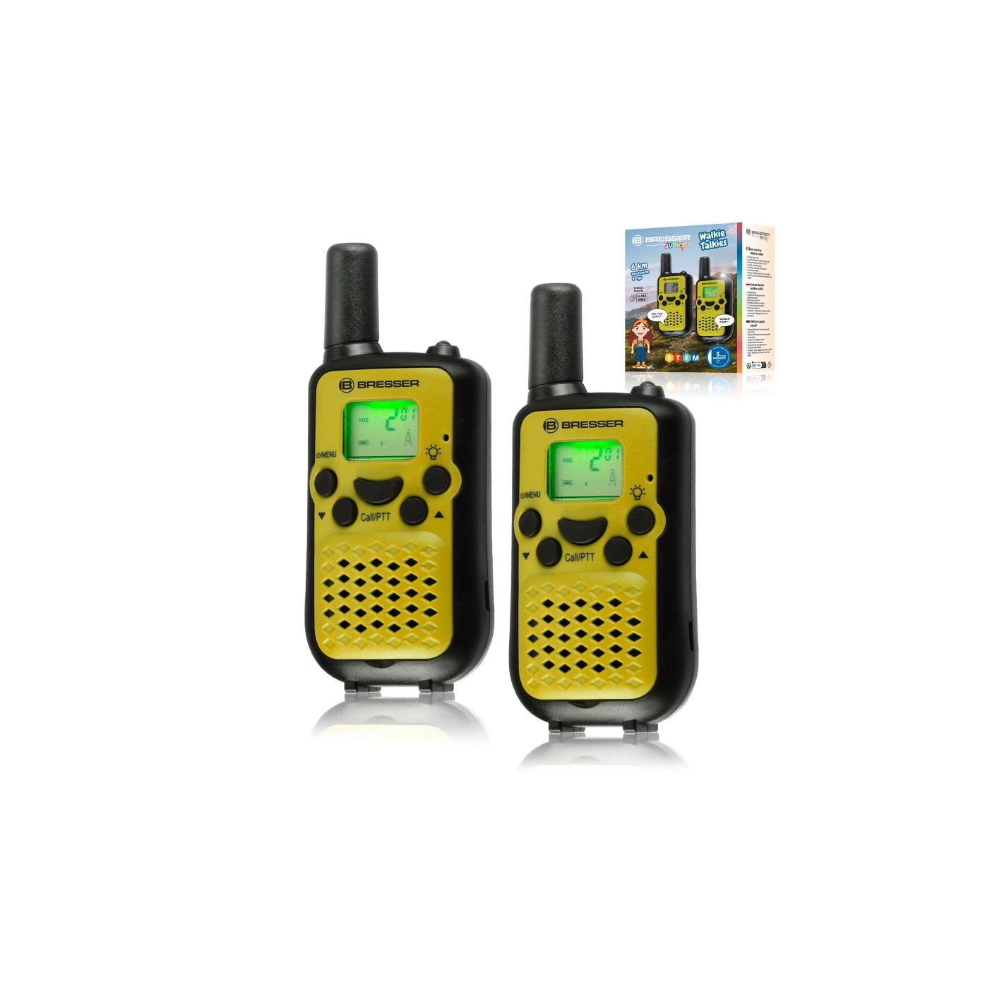 Set de 2 talkies-walkies BRESSER JUNIOR avec longue portée jusqu'à 6 km et fonction mains libres couleur citron vert